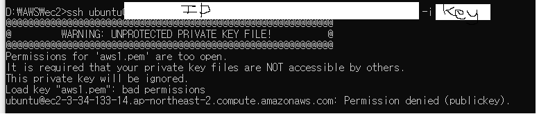 EC2 생성 시 Key Pair 설정 후 해당 Key로 Windows Command SSH 로 접근하려고 하면