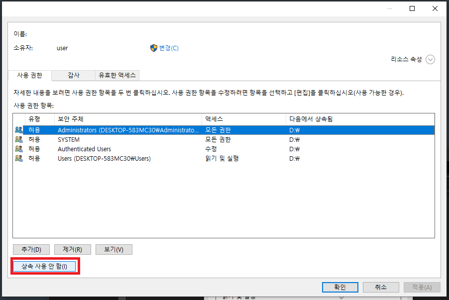 파일-> [속성] -> [고급] 내에서 아래와 같이 작업 수행 후 SSH로 연결하면 EC2로 연결이 가능하다.